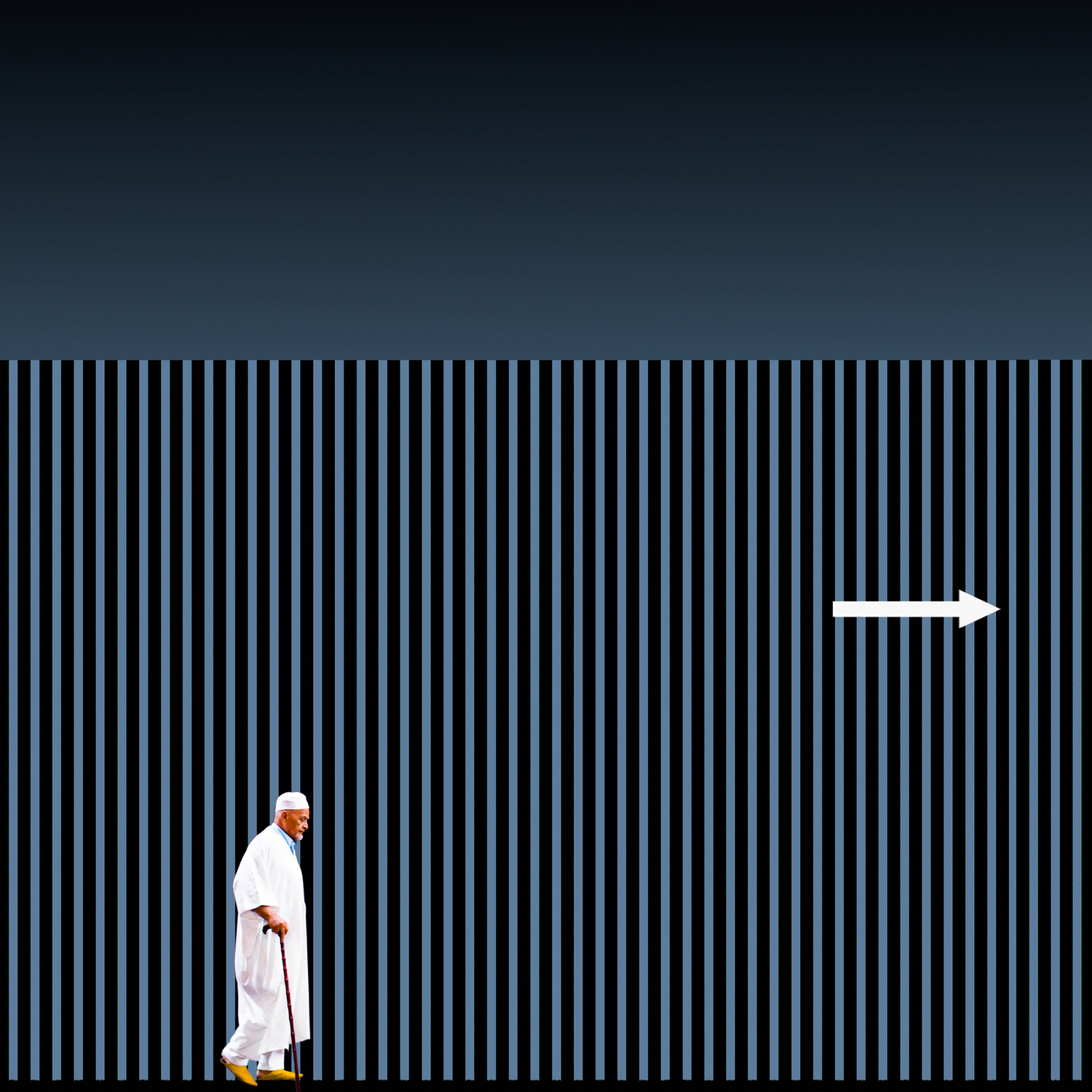 I made that move to emphasize the scale of the sci-fi shape of the building compared with the tiny figure down below. However, the leading lines are there. That helps to create stability in a somewhat tense and unbalanced composition.