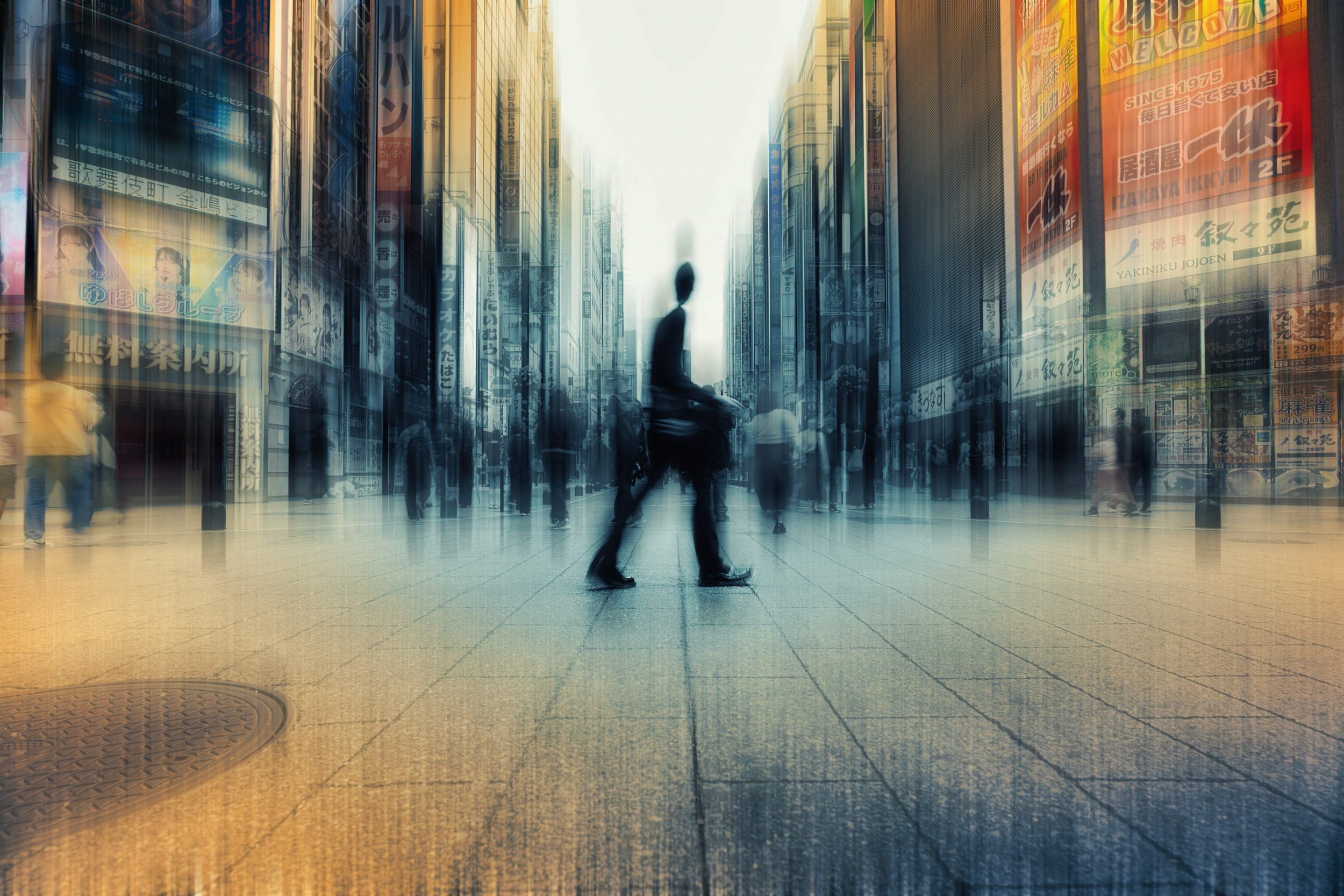 For example, the theme of a piece I exhibited at the very first 1X exhibition in Japan was the ever-changing city and its inhabitants. I spent time finding a location where I could capture a person inside a new building, reflections of old townscapes in glass and a construction site in one composition.