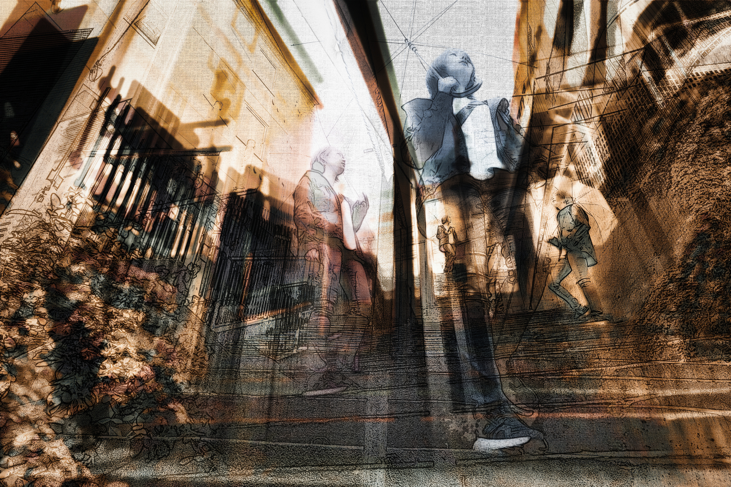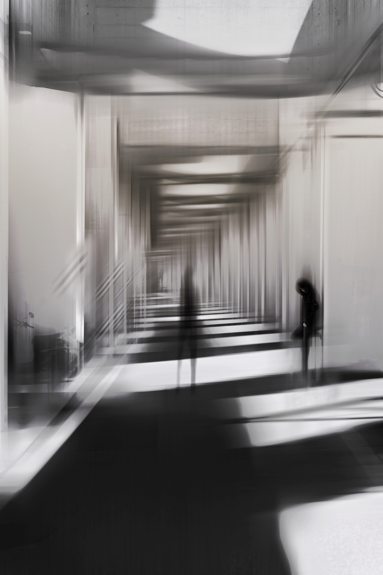 By placing people within these scenes, I can emphasize and direct the narrative while adding geometric intrigue through buildings and structures. My photographic work integrates abstract components to encourage individual interpretation by viewers. I experiment with out-of-focus effects, different types of blur and combining multiple images to increase the level of abstraction slightly.