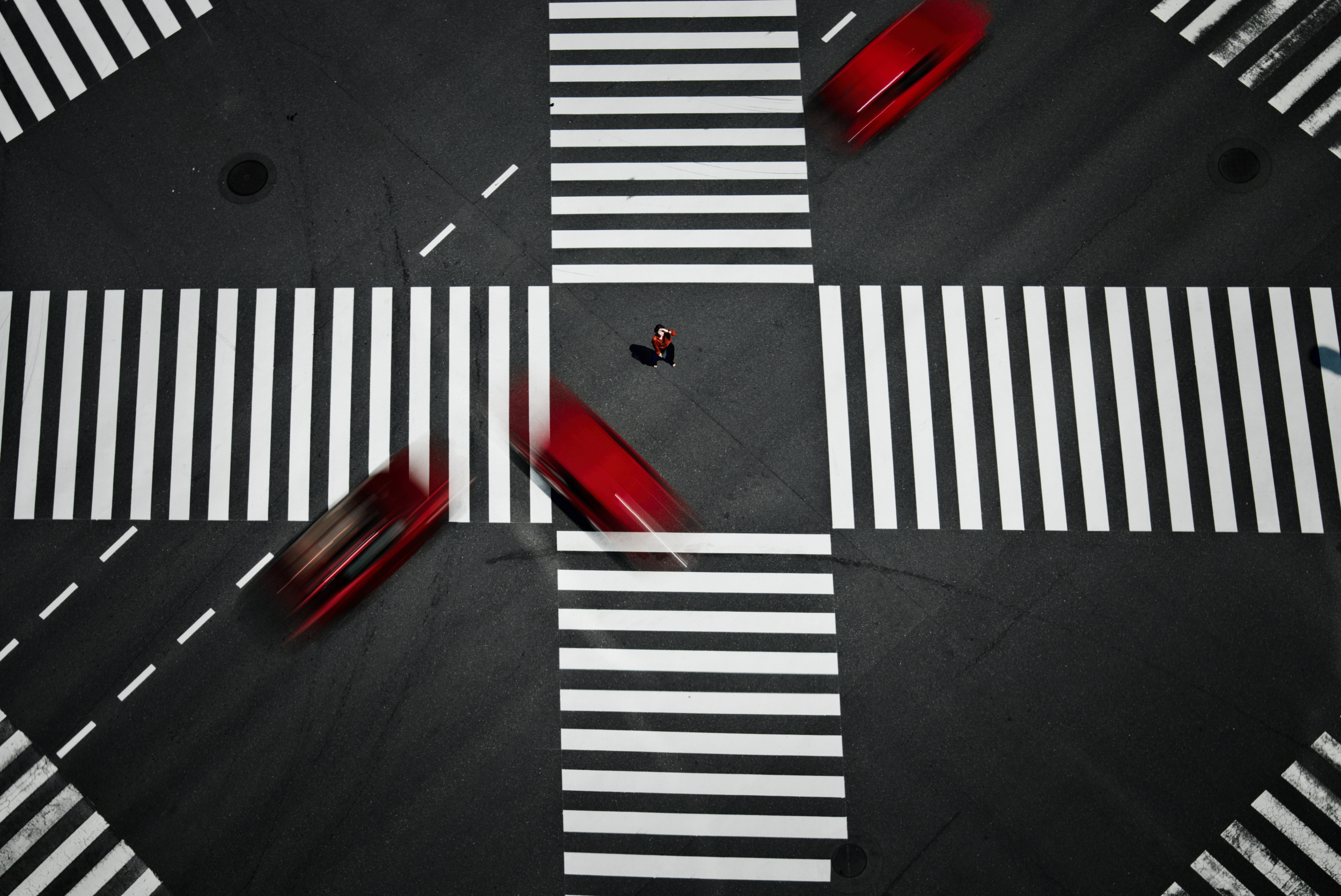 When I found a spot from which I could look down on the intersection from almost directly above, with the rooftop of the building opposite looking like a miniature garden, I thought I could use it to depict human emotions in an urban setting: pride, anxiety, loneliness and stress.